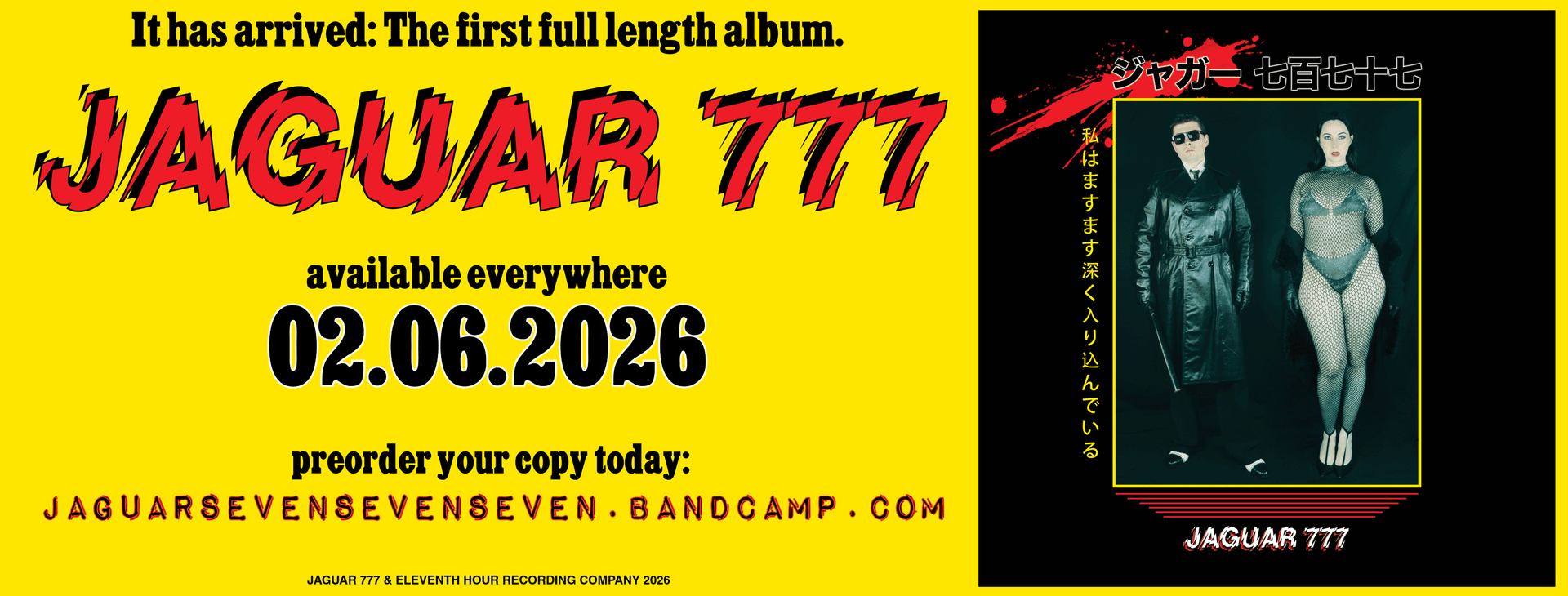 Cleveland, OH – Jaguar 777, the seductive and primal music and performance act formed by artists Kacie Marie and Emmett O’Connor, is thrilled to announce the release of their highly anticipated first full-length album February 6, on Eleventh Hour Recording Company.